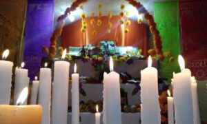 “Estamos celebrando la llegada de mi madre, una mujer alegre de 66 años de edad que falleció hace dos años, y que ahora sentimos su presencia. Ahorita estoy adornando las velas con flores amarillas y cresta de gallo, también le pondremos sus galletas y dulces de calabaza y camote, como a ella le gustaba”, contó su hija Zorayda Carballo Carrasco.