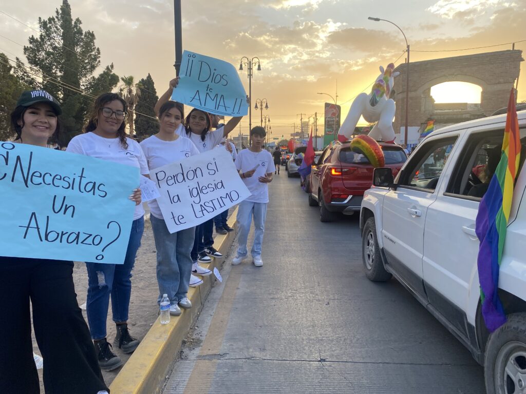 Un grupo de personas cristianas de la iglesia “Generación de Adoradores”, también se apostó a los laterales de la avenida 16 de Septiembre para recibir a la comunidad LGTBQI+, portando cartulinas donde se leía “No venimos a juzgarte”, “¿Necesitas un abrazo? Jesús quiere abrazarte”, “Perdón si la Iglesia te lastimó”, y “Dios te ama”.
