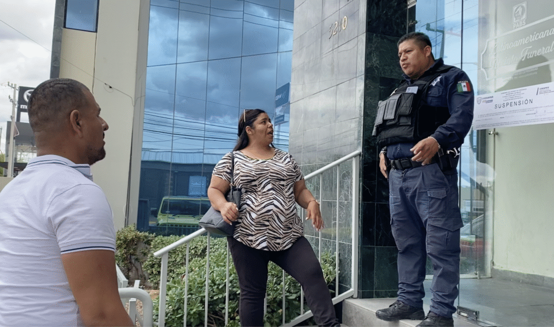 La falta de información generó un breve enfrentamiento entre familiares y personal de la funeraria al interior del establecimiento. Minutos después, elementos de la Policía Municipal acudieron al lugar, que en sus puertas exhibía sellos de suspensión colocados por la Comisión Estatal para la Protección contra Riesgos Sanitarios (Coespris).