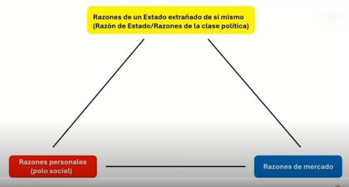 Luego de dedicar varios años al estudio del crimen organizado ―tarea que le ha permitido conversar con sobrevivientes e involucrados en la desaparición de personas―, explica en entrevista que existe un riesgo de mitificar la victimización de la sociedad ante el Estado, cuando son los tres elementos de la formación social los corresponsables de este problema. Es una especie de triángulo en cuyos vértices están las razones de índole política, social y económica. Sabe que esta propuesta no es rentable ni para el discurso oficial ni para la oposición partidista, pero se conduce con precaución. Da algunas claves desde el discurso teórico, pero también señala algunas zonas grises: acuerdos tácitos entre el crimen organizado y el Estado, como el beneficio mutuo que las desapariciones representan, por un lado, para los gobiernos al reducirse las cifras de homicidios, y por otro, para los grupos criminales por la falta de investigaciones, o el lucro que empresas legalmente constituidas en el ramo de las remesas obtienen con el cobro de extorsiones.