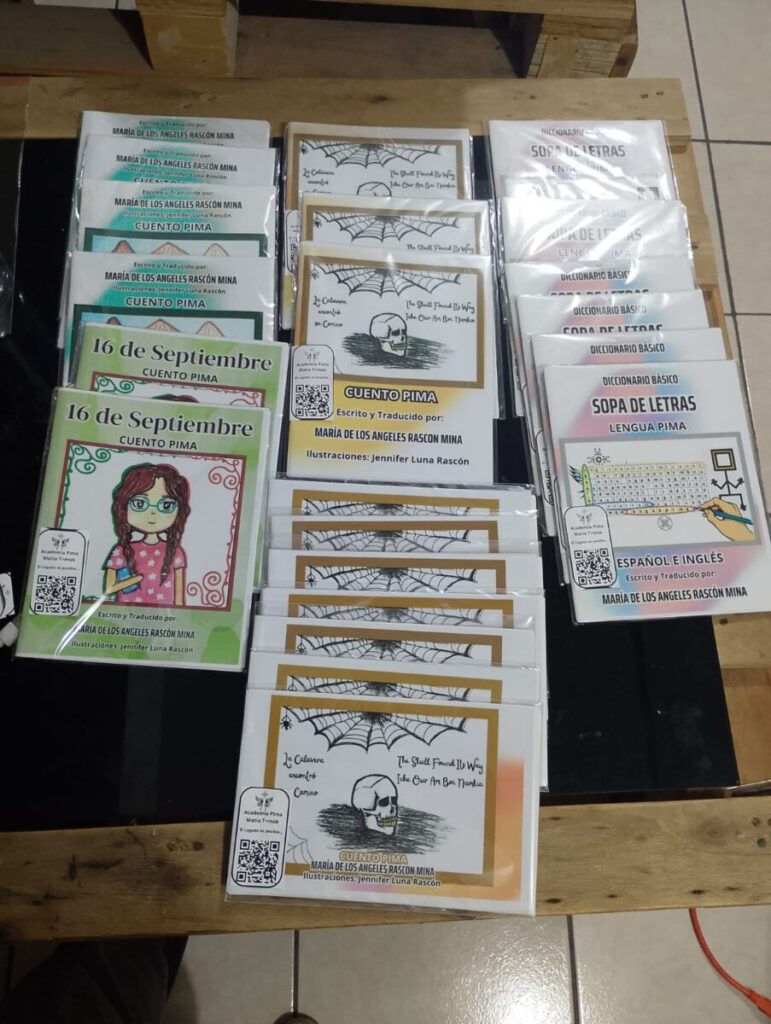 Se trata de un esfuerzo independiente, nacido del trabajo colectivo de su familia y del respaldo de integrantes de la comunidad. “Nos encontramos en la elaboración de materiales porque hacen mucha falta para las comunidades pimas, para el pueblo pima en general”, explicó Rascón Mina, también fundadora de la Academia Pima u O´oba Oichkama Matía T+mok.