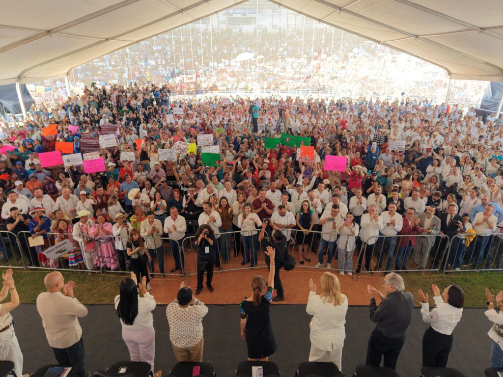 “Hoy que estamos cerca de la frontera, díganle a sus familiares —que estoy segura que todos tienen familiares del otro lado de la frontera— que estamos con ellos, que los cuidamos, que se acerquen a los Consulados. Estamos destinando recursos a los Consulados para que nuestras paisanas y paisanos siempre tengan el apoyo de su gobierno”, comentó.