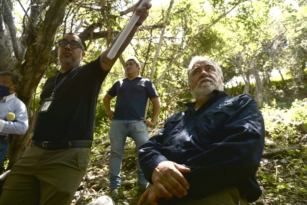 El exfiscal especial Omar Gómez Trejo (izq.), y el entonces subsecretario de Derechos Humanos Alejandro Encinas, durante un recorrido por la Barranca de la Carnicería, donde se encontraron restos óseos de los normalistas Christian Alfonso Rodríguez Telumbre y Jhosivani Guerrero de la Cruz. Fotografía: Lucía Flores