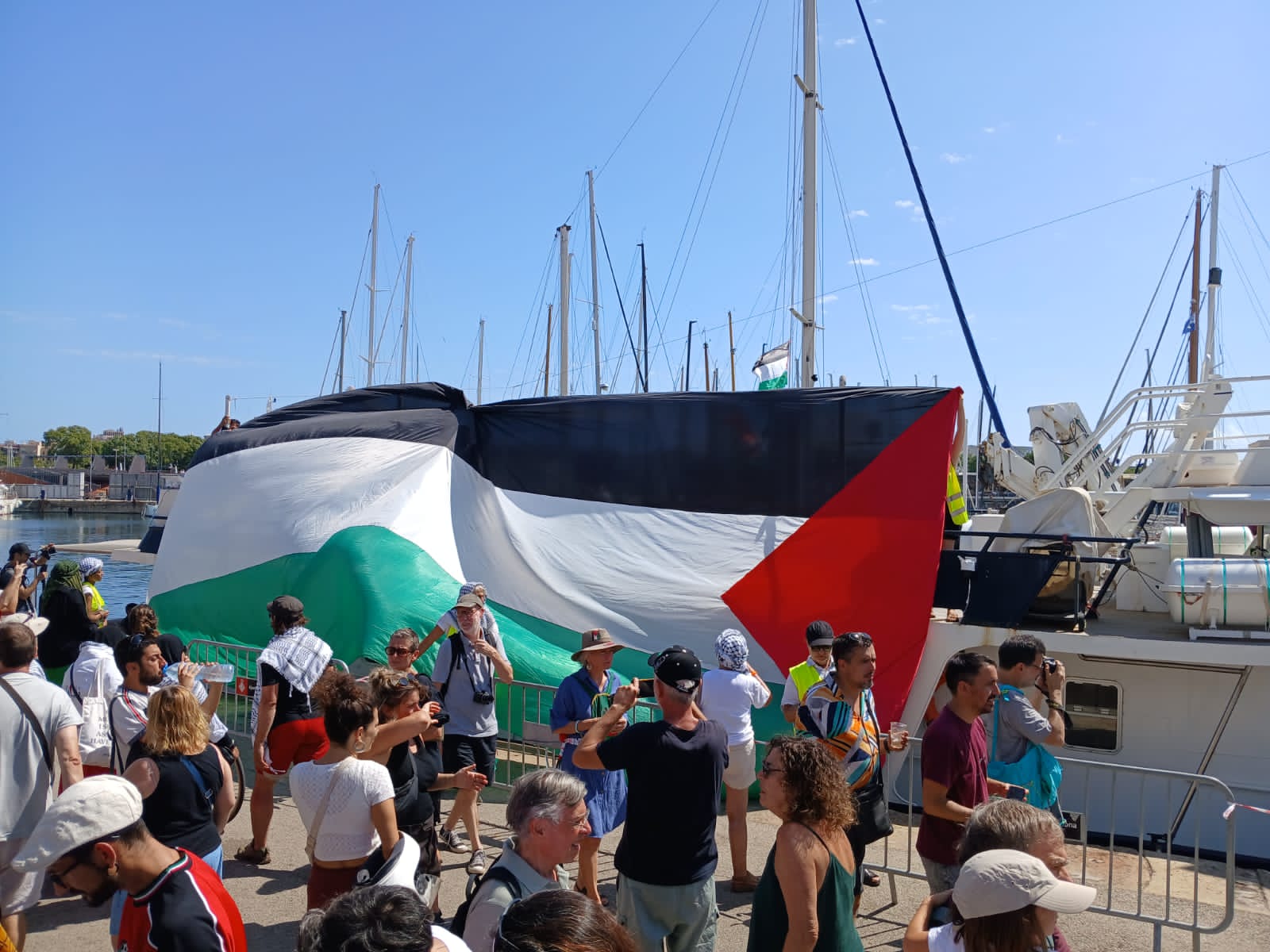 El domingo 7 de septiembre, tras ocho días navegando en el Mediterráneo, la Global Sumud Flotilla, llegó a Túnez para reabastecer a los barcos de combustible, de comida para la flota y los activistas, y para que éstos descansen y se bañen. En los barcos el agua es solo para las necesidades apremiantes.