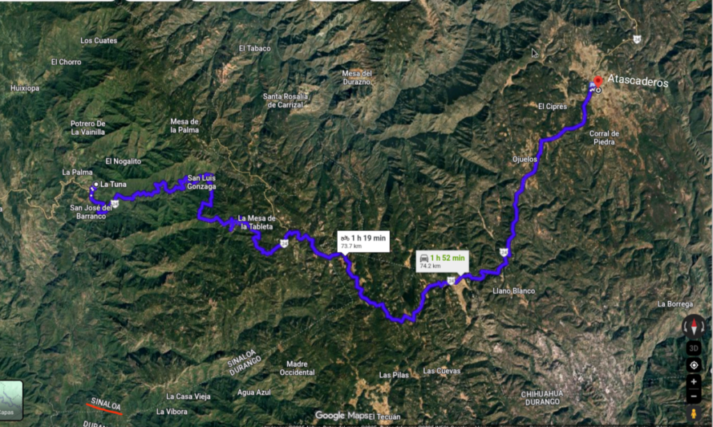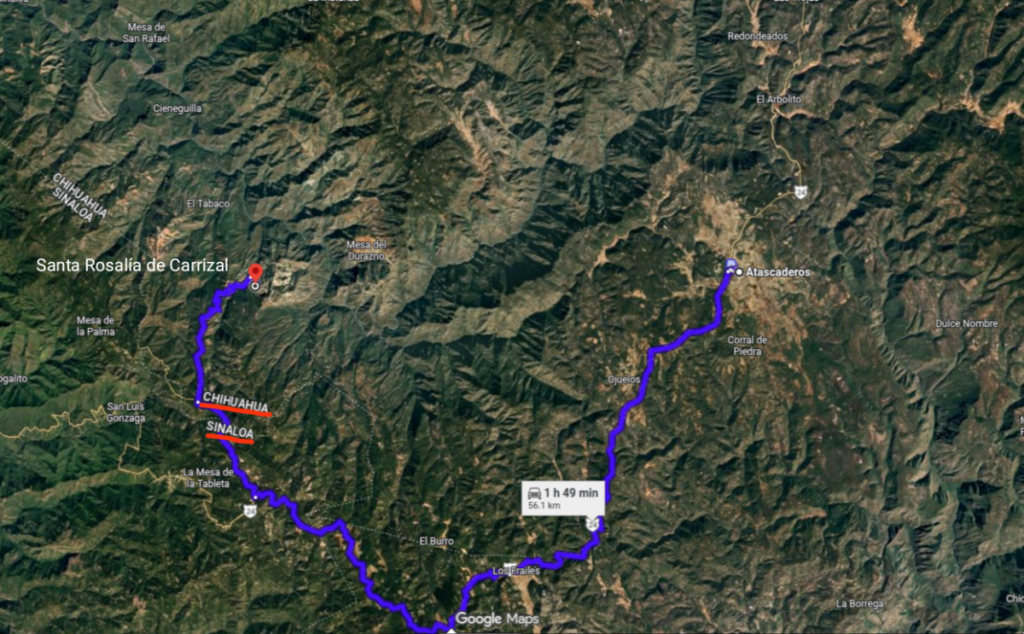 Para llegar a Atascaderos, desde Santa Rosalía de Carrizal, se hacen dos horas aproximadamente en automóvil. Sin embargo, decenas de familias más salieron caminando (entre ellas llevaban niñas, niños y adultos mayores), por lo que llegaron hasta la mañana siguiente y en el transcurso del día. Se esparcieron a diferentes lugares de Atascaderos y algunos más continuaron a otros lugares del estado de Chihuahua.