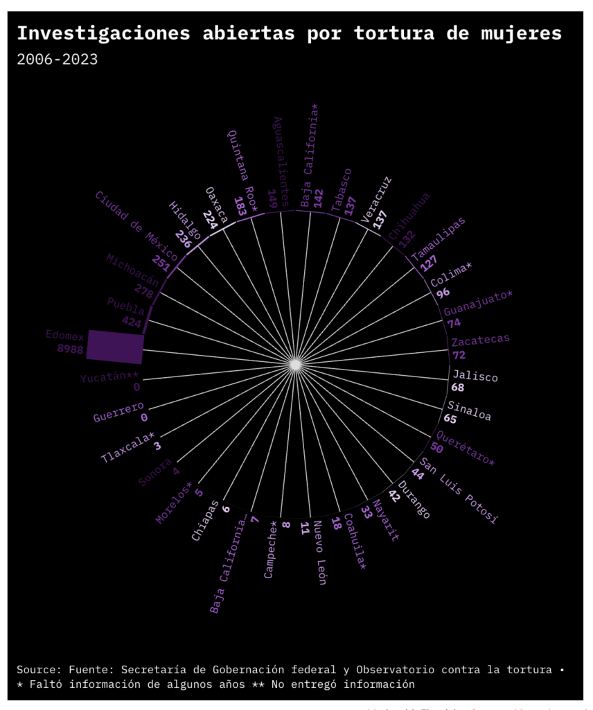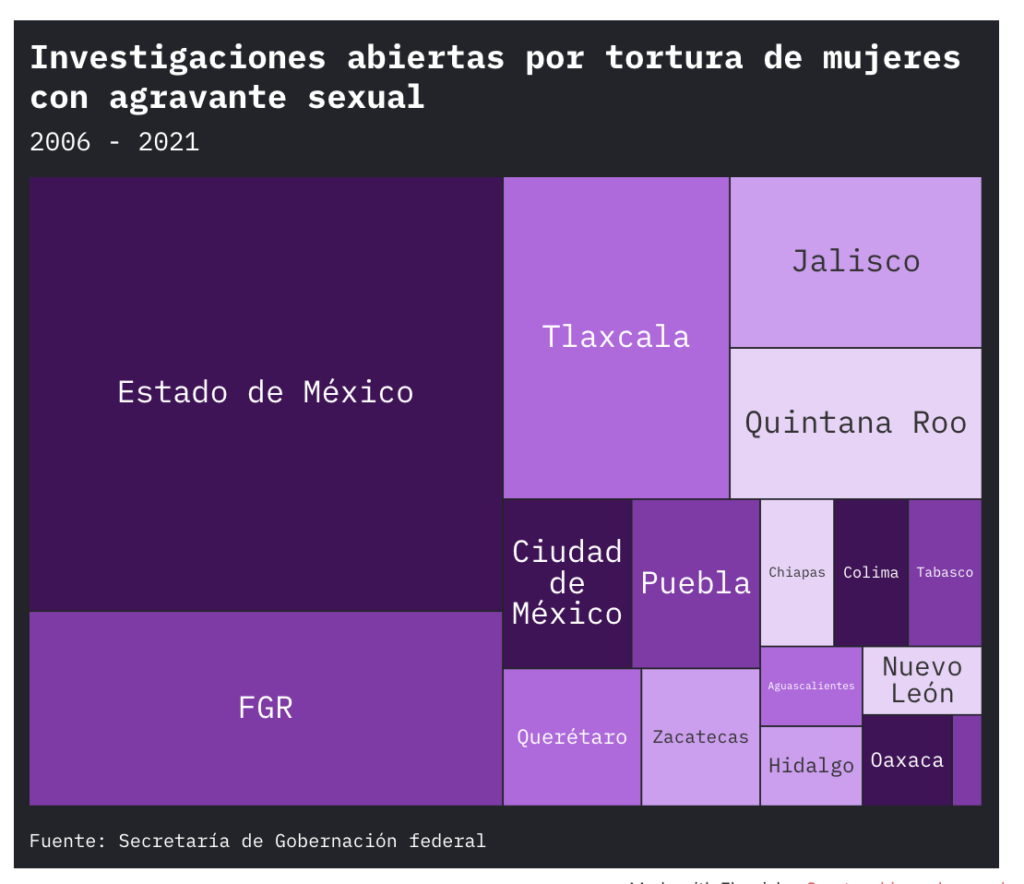 Ejemplo de ello es que en Puebla, de las 424 carpetas de investigación abiertas por tortura contra mujeres, no hay sentencias condenatorias.