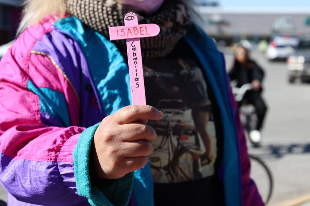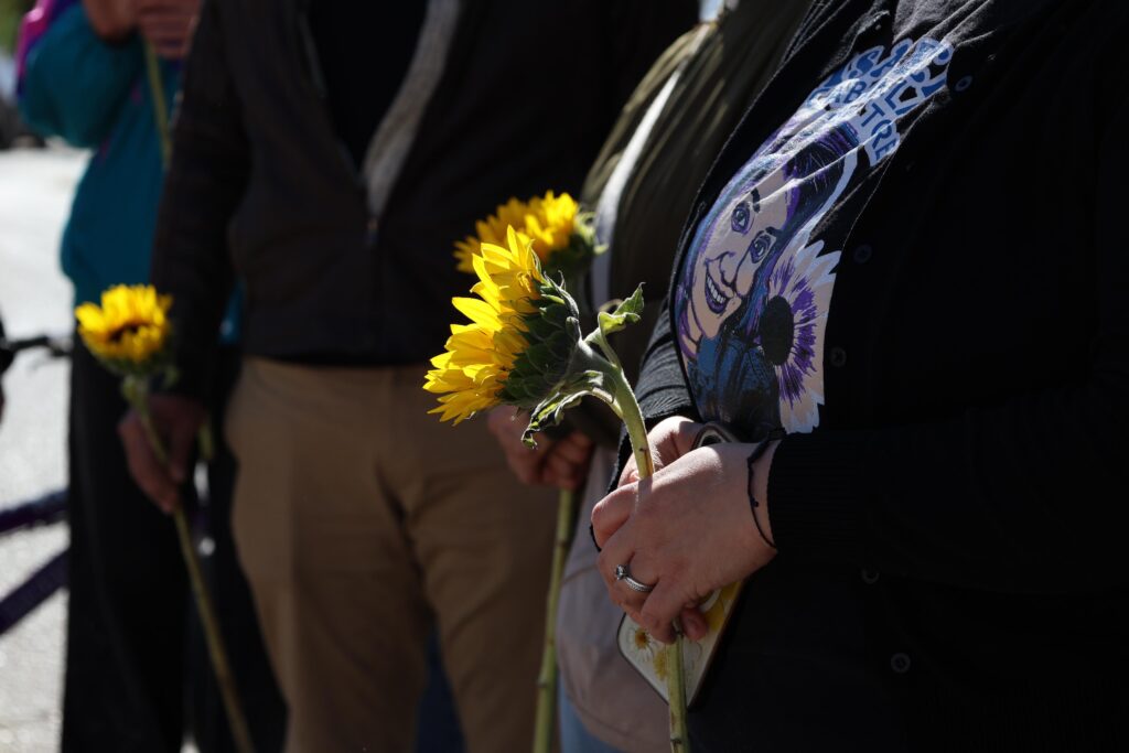 Las personas colocan girasoles al pie de la nueva cruz, mientras al fondo suena Moriré en el Río, de Los Silver, canción que se ha vuelto emblemática para recordar a Isabel. Luego truenan consignas como “Isa vive, la lucha sigue” e “Isa, escucha, tu madre está en la lucha”. Varias personas se acercan a reconfortar a Reyna, quien, poco a poco, vuelve a sonreír.