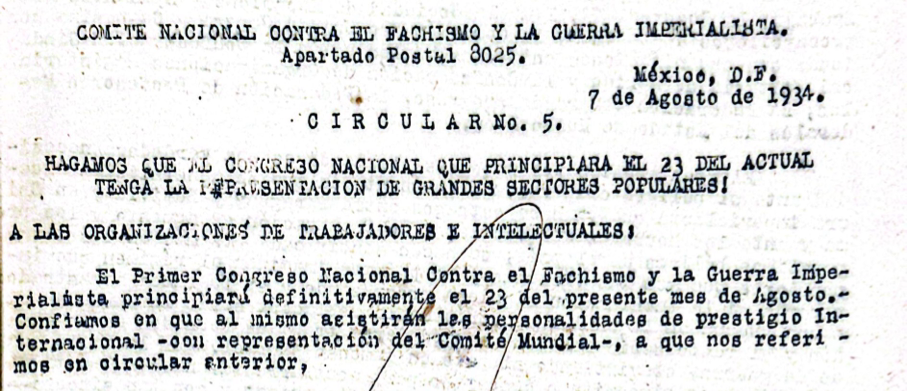 En esa carta, Emiliano Canchola Flores se refería a que se dirigía al Primer Congreso Contra el Fachismo y la Guerra Imperialista.