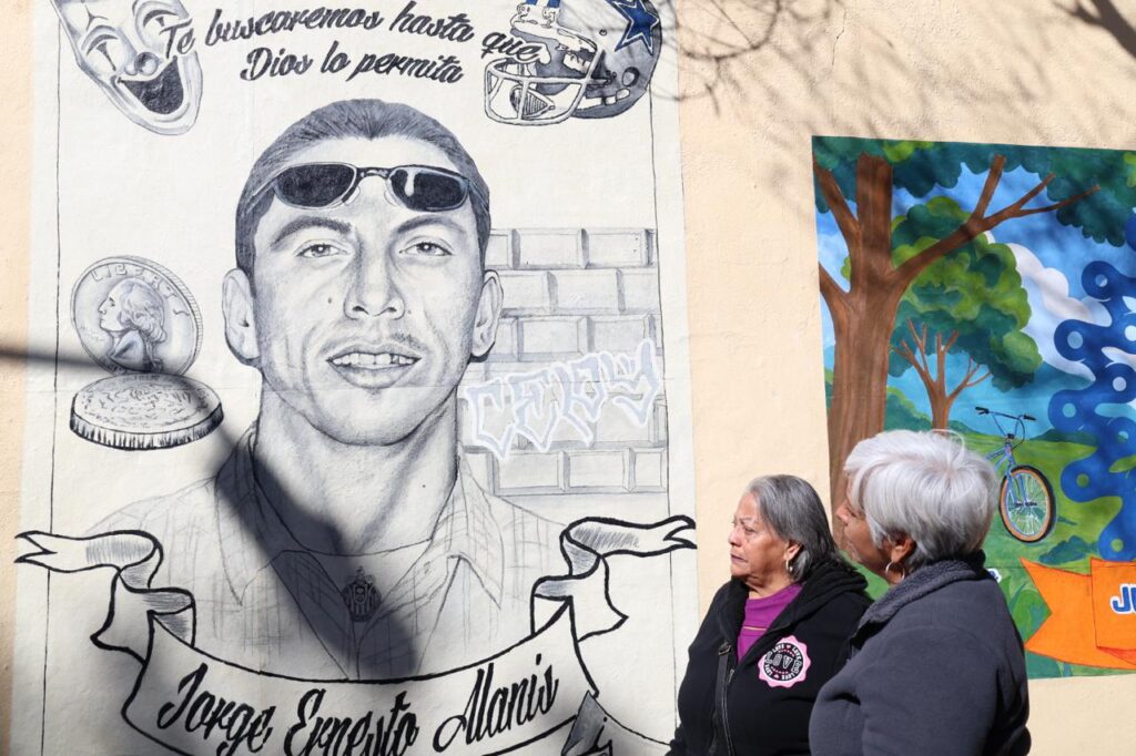 “Hijo mío, te extraño tanto, tanto, tanto, mi amor, que no tengo palabras para decirte cómo me duele no poder verte en casa, no poder abrazarte, no poder hablar contigo y decirte todo lo que siento. De perdida hoy, mi amor, tengo donde venir a llorarte. Gracias a este mural, de perdida tengo donde venir a ponerte flores, cariño. Te amo, hijo mío, y te amaré por siempre, por siempre”, dice Patricia, de frente al mural, entre lágrimas.