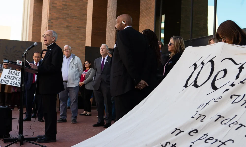 Encabezados por líderes religiosos, decenas de residentes fronterizos marcharon la noche de este lunes en El Paso, Texas, en solidaridad con las...